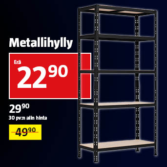 Tarjous!Metallihylly musta 180 x 90 x 40 cm2290 4990 norm. hinta 2990 30 pv:n alin hintaVerkkokauppaNouto tavaratalosta -